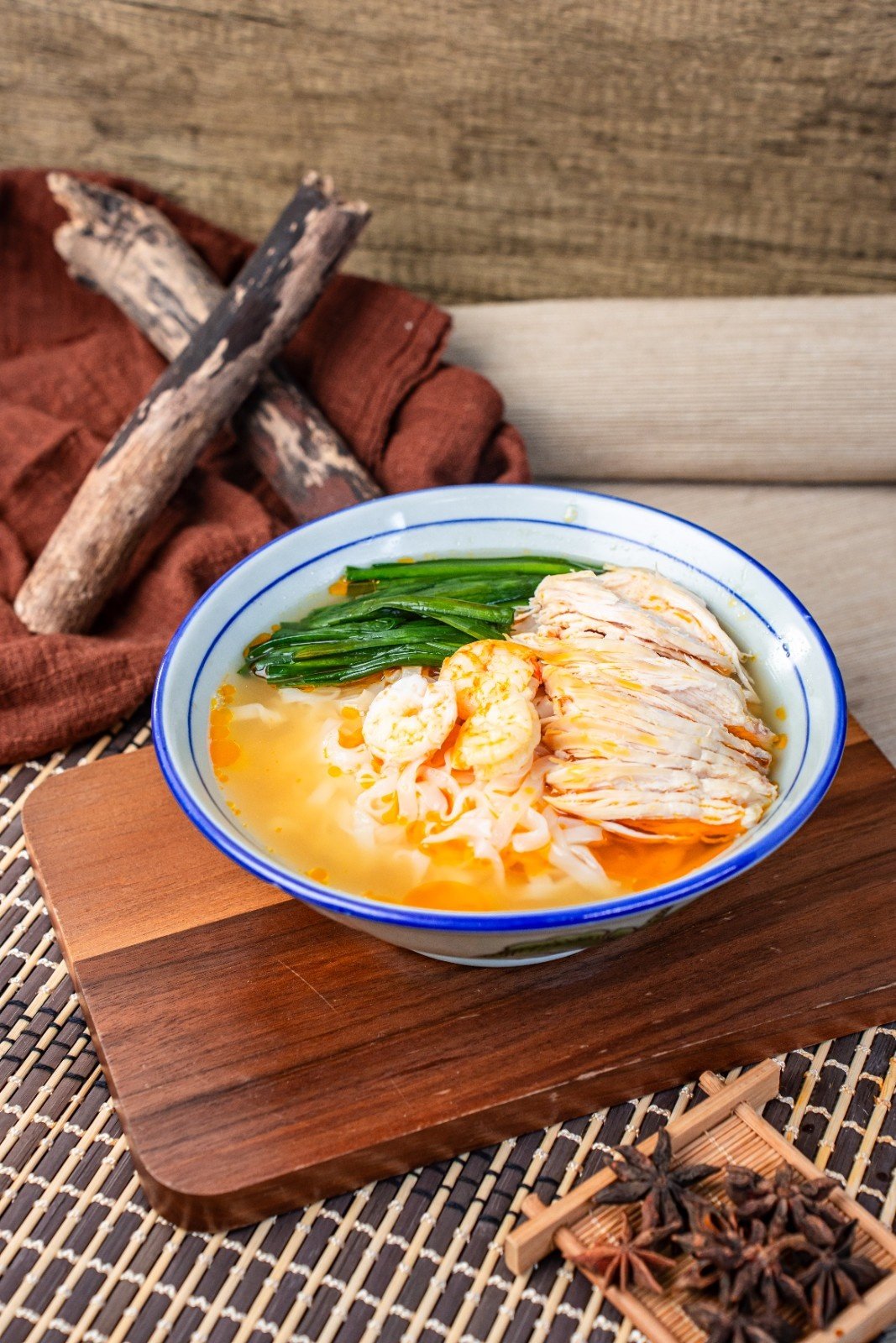 如果你来到Permas 的“ 70’s 正宗怡保美食 ”,店主首推的必点菜品就是那道让人念念不忘的“怡保鸡丝河粉”。这道经典怡保美食,不仅在本地闻名,更是将怡保风味带到新山的代表作。它的汤底采用鲜虾与鸡骨长时间慢火熬制,汤汁清透但味道浓郁,每一口都带有浓厚的鲜美滋味。再搭配上特制的扁河粉、新鲜的虾仁、鸡丝与葱花,形成了让人难以忘怀的层次感。每一口都像是在与记忆中的怡保美食重逢。
