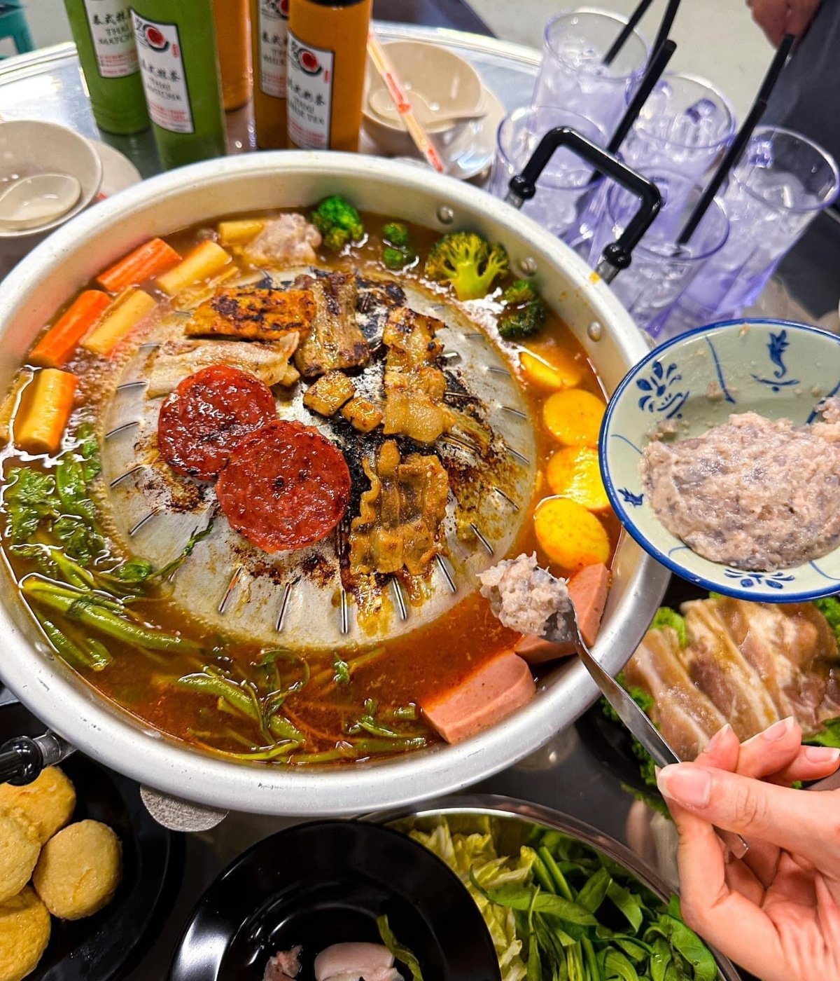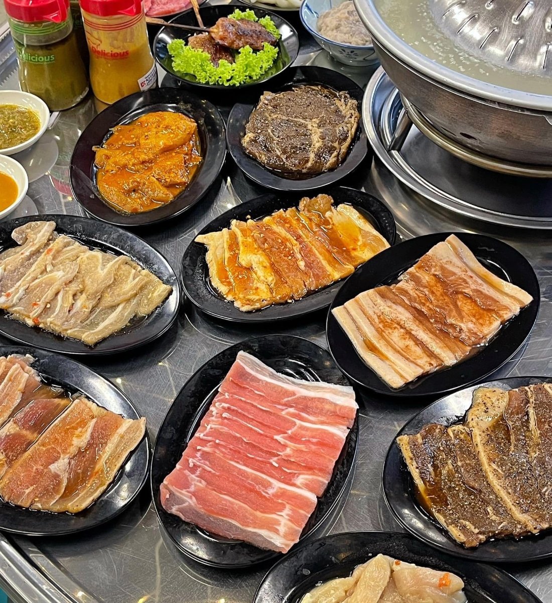 其高性价比的套餐是众所周知的,2至3人份的套餐仅需48马币,就可以享受到丰富多样的肉类选择,再加上无限量供应的冬粉和新鲜蔬菜。「 DND Thai Mookata Restaurant 」的特色在于使用炭火烹饪,这种传统方式让肉品散发出迷人的炭烤香气,同时保持肉质的鲜嫩多汁。餐厅提供多达九种口味的腌制猪肉和鸡肉片,包括原味、台湾甜酱、香辣味和黑胡椒等,每一片肉都经过精心腌制,确保每一口都是美味的享受。