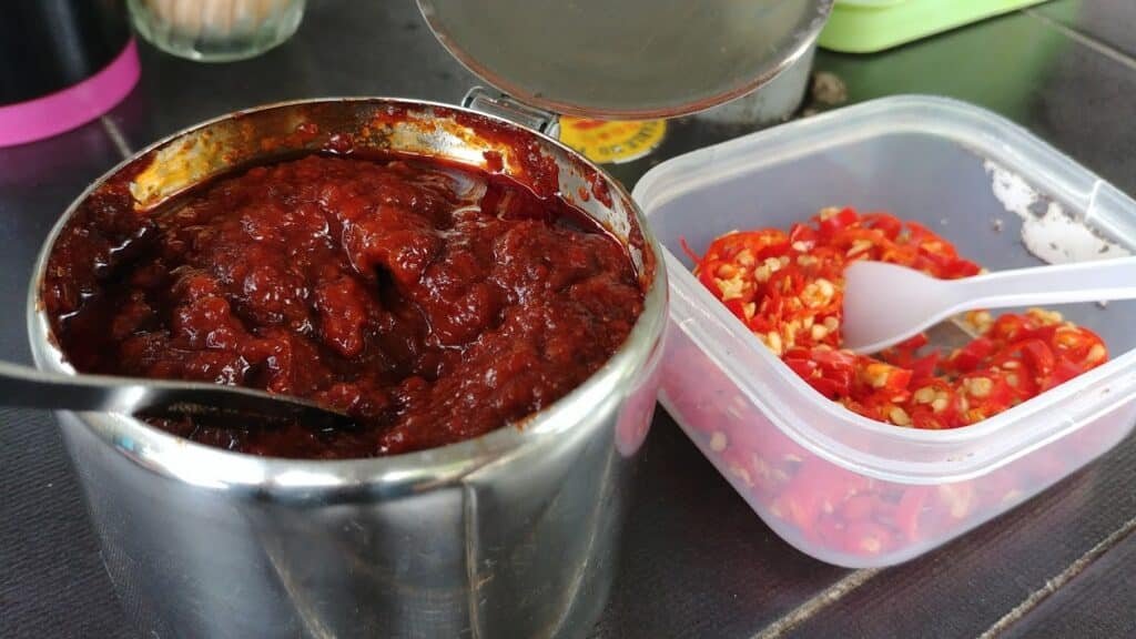 当你走进「 宽中辣沙 」,首先迎面而来的是那浓郁至极的香气。这香气来源于叻沙的汤底,它融合了超过20种香料的味道,仿佛在告诉每位食客,这里的叻沙是经过精心制作的。手工鱼丸、酿豆腐和炸腐竹浸泡在这汤底中,每一口都是一个完美的味觉盛宴。而椰浆带来的微妙甜香,与中等的辣度形成了完美的平衡。对于那些喜欢更加辛辣的食客,店家自制的叁巴酱等待着你,为你的叻沙添加更多层次和风味。