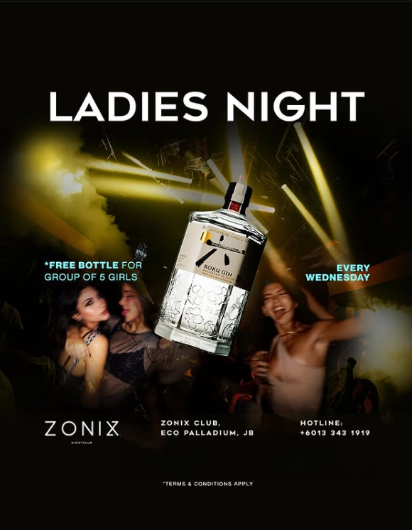 - Wednesday: Ladies Night — 5位女生免费获得1支Rokugin!(先到先得,错过不再!)