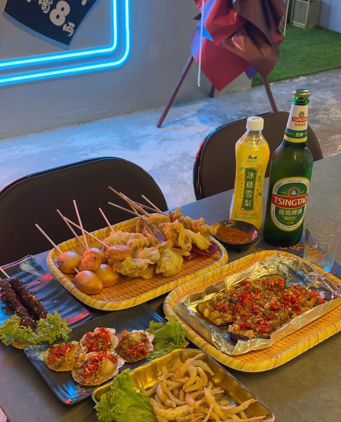 Puchong的夜生活不只是吃那么简单,吃得开心、吃得自在才是王道。如果你还在想“深夜聚会哪里吃比较合适”,来这家串串烧烤店就对了。这里不仅有丰富的串串和烧烤,还有KTV包厢和饮料区,适合朋友聚会、生日小聚或下班后的随性放松。