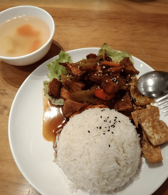 坐在户外区,眼前是夕阳的余晖,耳畔是微风轻拂的声音。这样的环境,加上店内的精心料理,仿佛是为了让你暂时忘却生活的忙碌与喧嚣,真正沉浸在这一刻的宁静中。靜思素食坊不仅仅关心你的味蕾,更关心你的心灵。这里,每一道菜、每一杯饮都充满了对生命的敬意和对食材的尊重。放下繁忙,来到这里,享受一次从心出发的美食之旅。