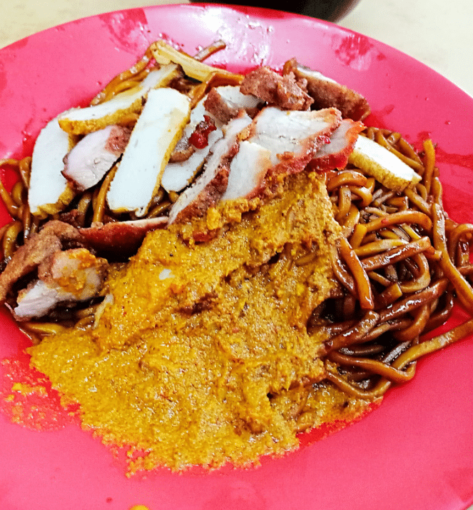 你或许会好奇,为何名为“猴子面”。但别被这有趣的名字误导,里面没有一丝猴子的痕迹。实际上,这是一碗饱满的干捞面,上面淋上了浓浓的咖喱。初看简单,但一旦你尝试搅拌,马上会发现咸甜的酱汁与咖喱的香味完美地交融,每一口都散发着令人陶醉的风味。而老板独家制作的“老鼠粉”更是不可或缺的亮点 — 那种Q弹的口感,融合了酱汁,堪称美味至极。叉烧和炸肉的香味,悠悠传来,让人忍不住想一试为快。