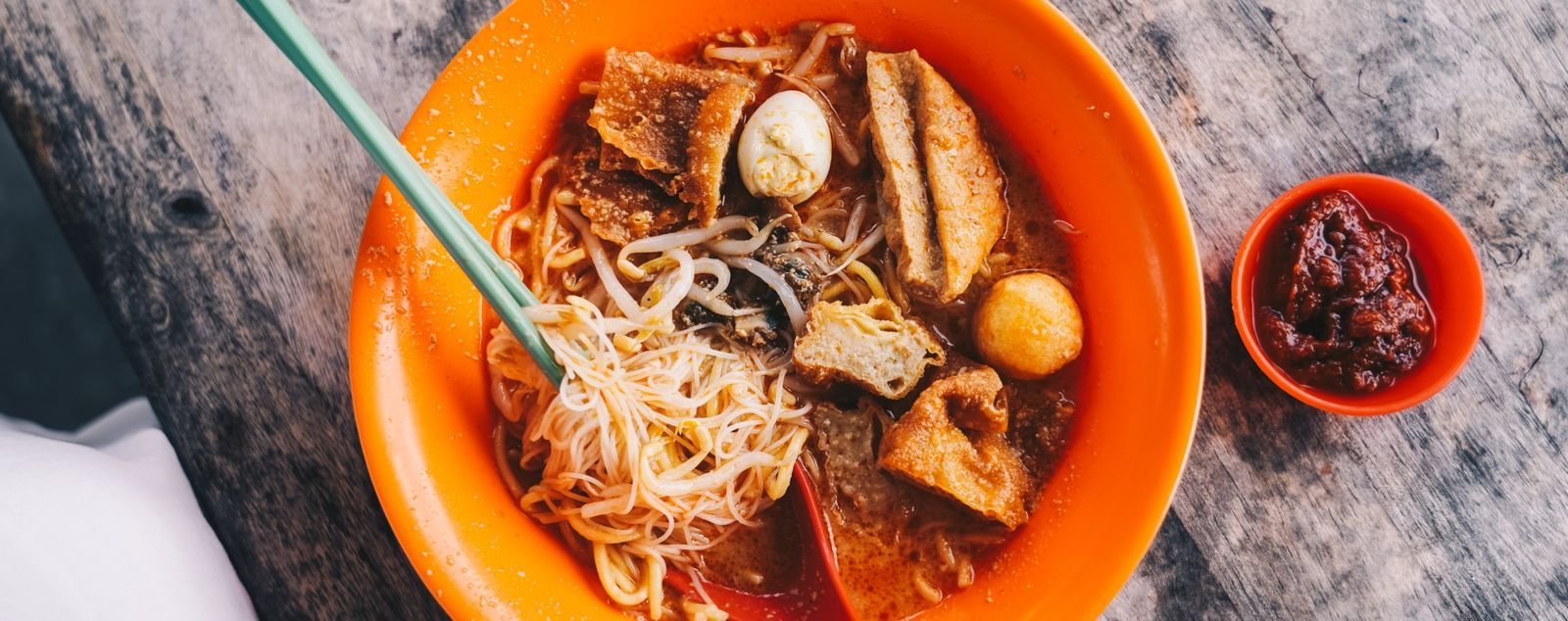 汤汁,是这碗叻沙的灵魂。老板特选老椰和虾米熬制,椰香四溢,混合着微微的海鲜甜味,既浓郁又温和。对于喜欢挑战味蕾的食客,还可以加入那诱人的叁巴辣椒酱,辣味立刻唤醒舌尖。豆芽、豆腐卜、鱼蛋、血蛤和鹌鹑蛋为其增添了丰富的口感,正是老派的经典。