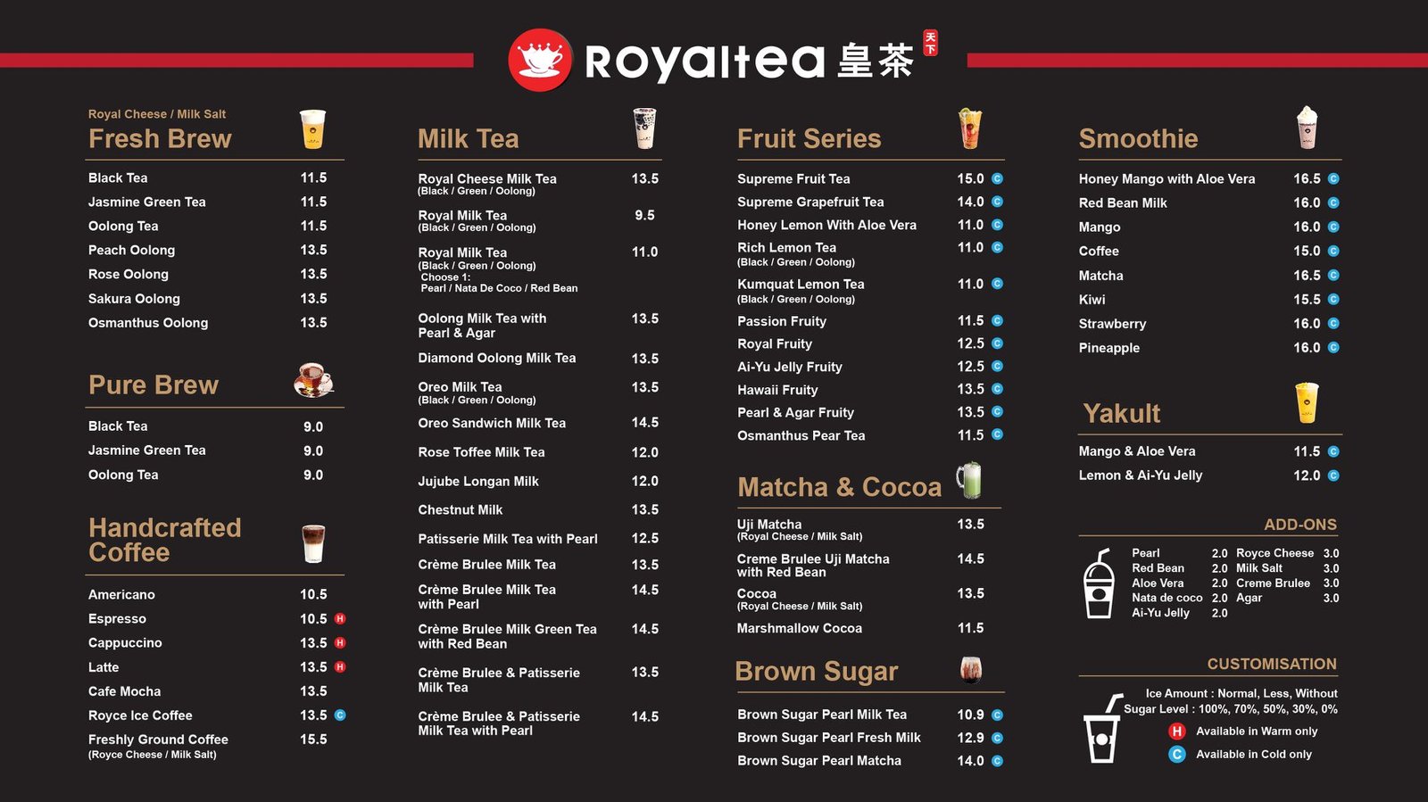 总的来说,[ Royaltea 皇茶 ] 不仅是品味的选择,更是生活的态度。现代的装潢,创新的饮食选择,都在向顾客传达一个信息:这里,是品味与生活的完美结合。还等什么?来[ Royaltea 皇茶 ],让我们一起沉醉在这场美味的盛宴中!