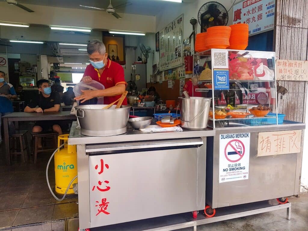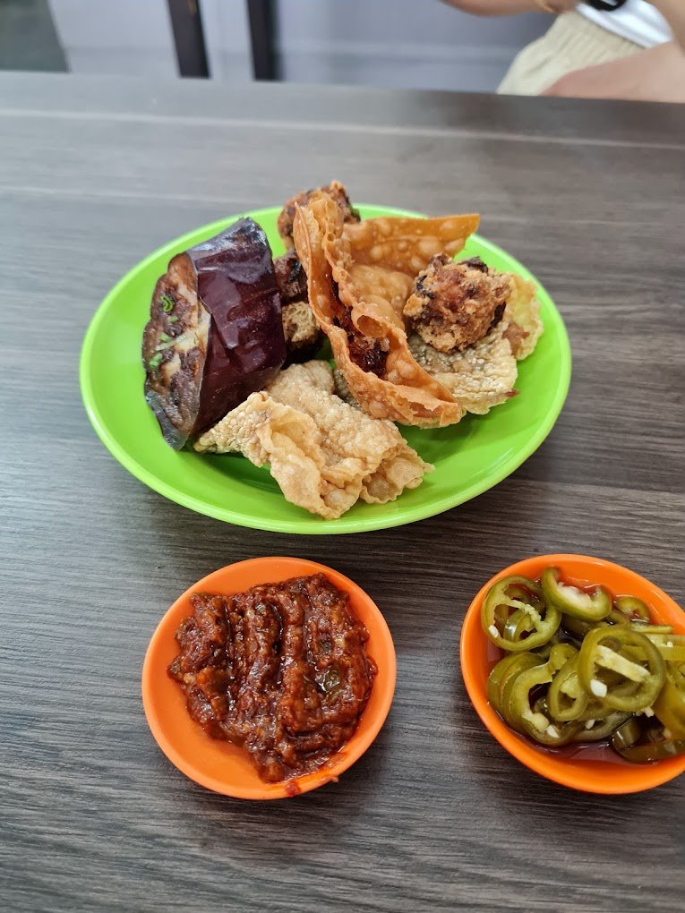 别看「 广记云吞面 」平平无奇的外表,它的独特之处是用包菜代替传统的菜心,带来了更为清脆的口感。汤底是由猪骨和江鱼仔慢煮而成,浓郁而不腻,每一口都令人心旷神怡,且不会让你感到口渴。另外,你绝不能错过老板娘亲手制作的客家酿豆腐、酥香的炸肉圆和外脆内嫩的炸茄子,每一样都是店里的招牌佳肴。要品尝到这些珍馐,建议您早点到达,否则下午来,可能就选不到酿豆腐了。
