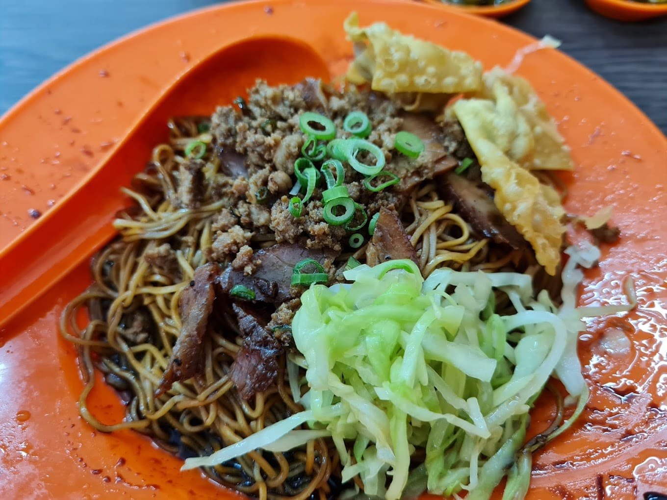 别看「 广记云吞面 」平平无奇的外表,它的独特之处是用包菜代替传统的菜心,带来了更为清脆的口感。汤底是由猪骨和江鱼仔慢煮而成,浓郁而不腻,每一口都令人心旷神怡,且不会让你感到口渴。另外,你绝不能错过老板娘亲手制作的客家酿豆腐、酥香的炸肉圆和外脆内嫩的炸茄子,每一样都是店里的招牌佳肴。要品尝到这些珍馐,建议您早点到达,否则下午来,可能就选不到酿豆腐了。