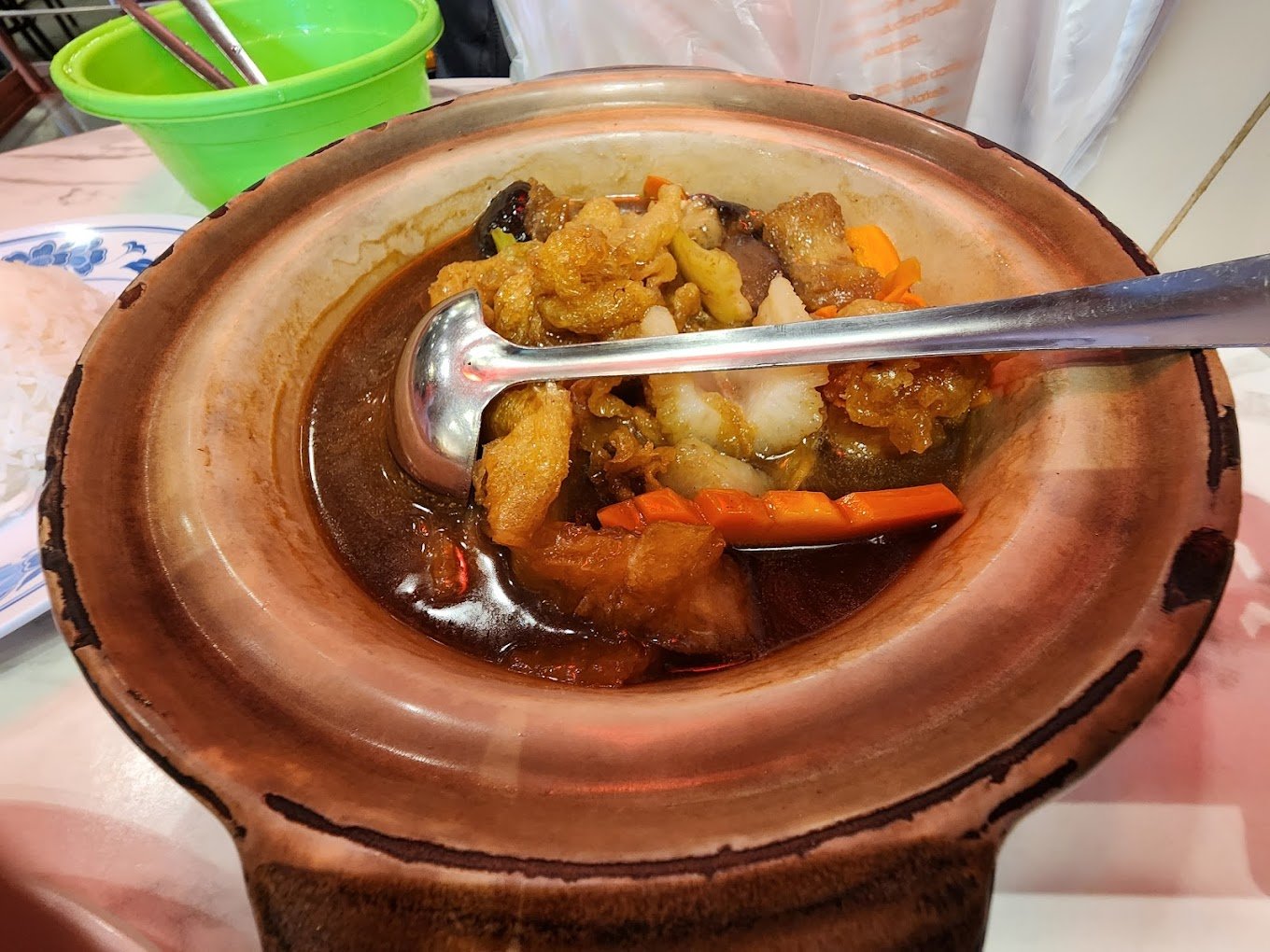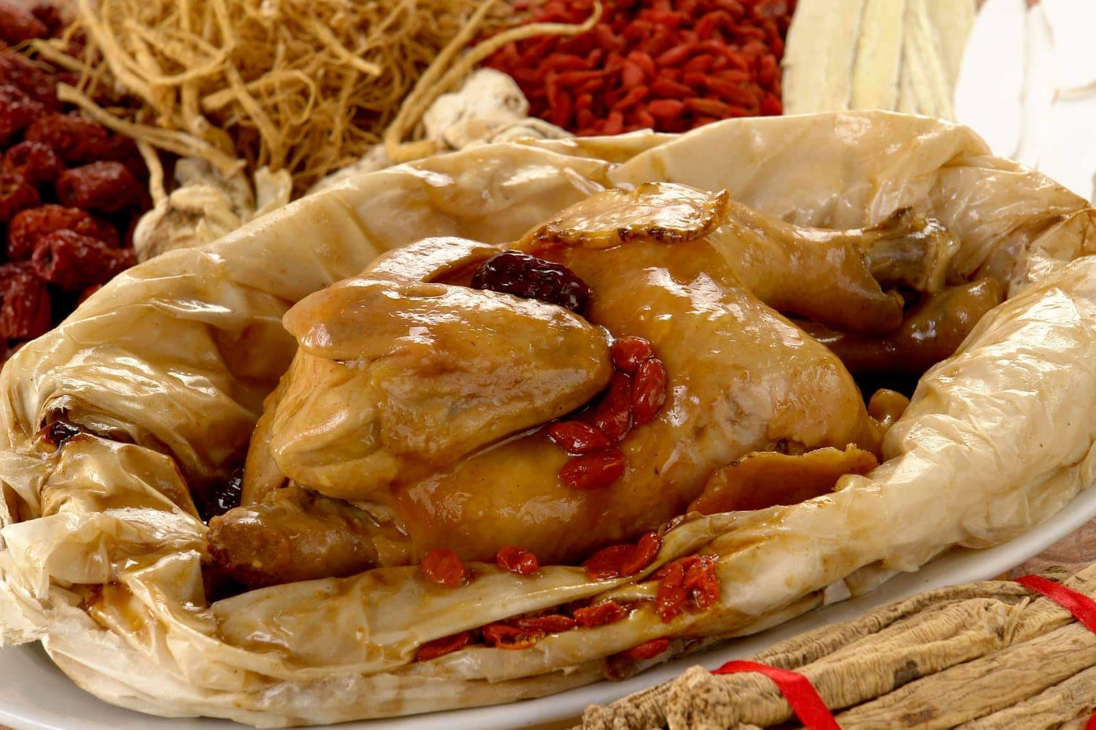 首当其冲的明星菜就是他们的 ” 药材纸包鸡 “。这不是普通的鸡,而是被称为红脚鸡的特别品种,红火而且鲜嫩。精心挑选的鸡肉被包裹在特制的玉石纸中,再融入如当归、淮山、杞子、党参、红枣等多种珍贵药材。经过蒸制,鸡肉和药材的美味融为一体,如同品味药膳SPA,滋味独特,余香绕梁。